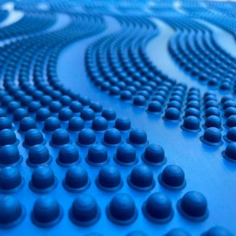 Unpredictable bounce: When a ball is thrown onto the mat, the mat causes it to bounce unpredictably, mimicking the challenge of spin bowling.